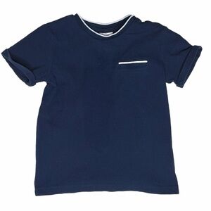 Stylish navy blue kids t-shirt with a classic white trim design and cuffed sleeves. Perfect for everyday wear.