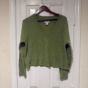 Rachel Zoe 100% Cashmere V-Neck Sweater Olive Green – Women's L