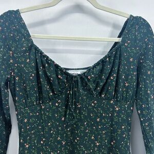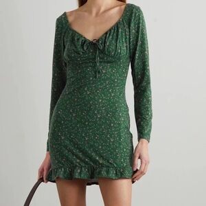 Reformation Anjeline Coriander Green Floral Long Sleeve Mini Dress Small