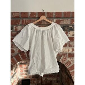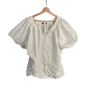Maggie Sweet White Cotton Puff Sleeve Button Front Blouse Women's Small