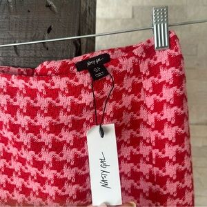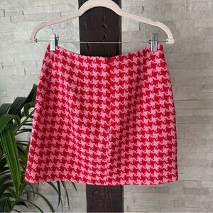 Nasty Gal Red Hot Pink Boucle Tweed Houndstooth Mini Skirt Size 6 NWT