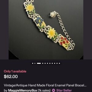 🫶🏻Vintage/Antique (not sure of exact year) 1920s handmade enamel panel floral bracelet. Missing original extender.