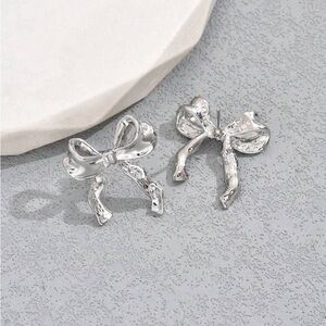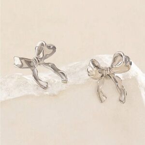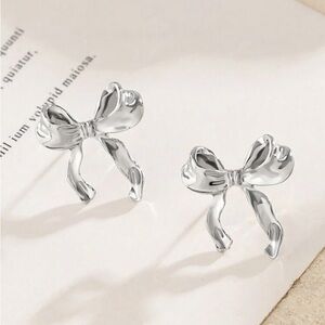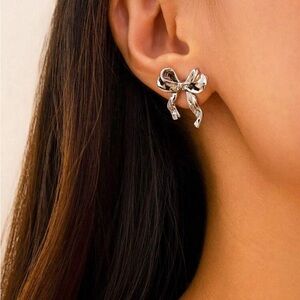 Add a touch of elegance to your look with these stunning silver bow earrings. Perfect for any occasion.