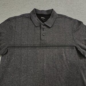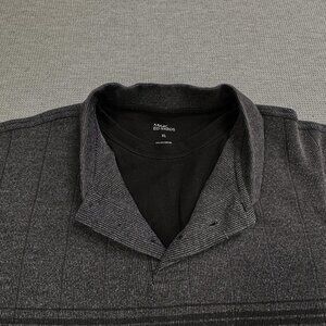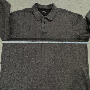 Marc Edwards Polo Shirt Long Sleeve Mens Size XL Mock Tee Charcoal Gray Stripes