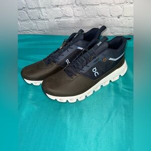 On Cloud Hi Lightweight Sneakers Blue Brown Leather Men’s Size 13 NEW