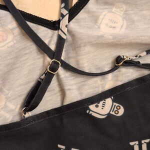 NWT ModCloth Robot Print Nightgown Dark Navy blue w black lace trim size S