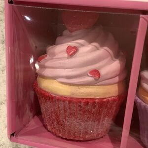 Charming set of three Valentine's themed resin colorful glittery cupcake decorations for the home or office. Cute as a basket filler as well. Features red, purple, and pink cupcake colors all with charming iridescent glitter for that pretty Valentines Sparkle! Perfect for festive décor. By JMLE LLC. NWT Boxed Set measures 10” x 4.50” x 3.25”. Manufacturer sealed box.