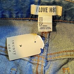 Forever 21 I Love H81 Cuffed Distressed Denim Jeans Shorts Size 26 NWT