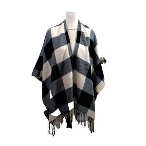 Womens Shawl Wrap With Fringe Black Plaid Clemson University Football