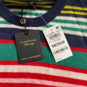 Club Room Men's Size Medium Rainbow Stripe 100% Cashmere Crew-Neck Sweater NWT