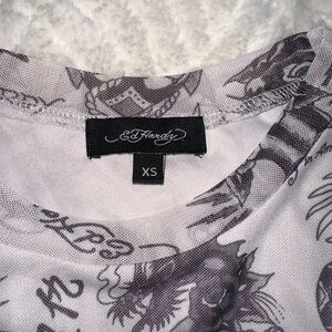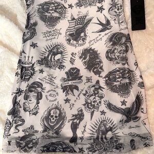 Ed Hardy mini dress with striking black graphics. Eye-catching and bold design. Perfect for a standout look.