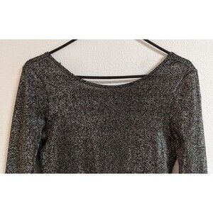 Women's DIVIDED H & M Black/Silver Metallic Scoop Back Holiday/Party Dress 8