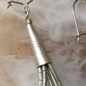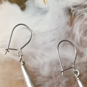 Vintage Native American earrings. Unmarked silvertone metal with blue turquoise beads. EVC. Lightweight