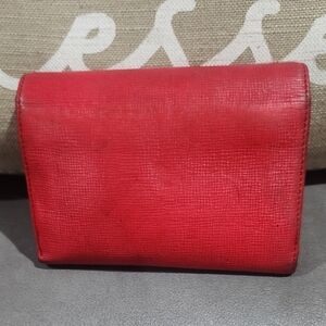 Chic MCM wallet in vibrant red leather. Features iconic logo accents. Perfect for stylish essentials.