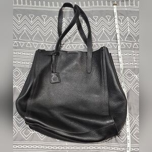 Great condition. Black. 100% pebbled leather. Buttery soft. Has an interior zip pocket. Magnetic closure. Hang tag with key ring. 2 leather straps you can tie to change the silhouette. Still has price tag on it but can tell its been used. No wear on the outside But staining on the inside zipper pocket. Measurements listed above in pictures.
