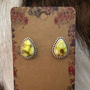 ❤️ Quality Palomino Variscite Navajo Style Teardrop Matte Sterling Stud Earrings