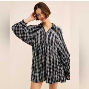 NWT Free People Hoffman Mini Dress Oversized black combo