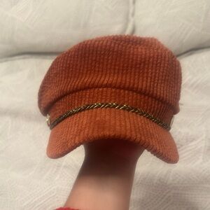 Elevate your style with this chic rust-colored corduroy newsboy cap. Perfect for adding a touch of vintage flair to any outfit.