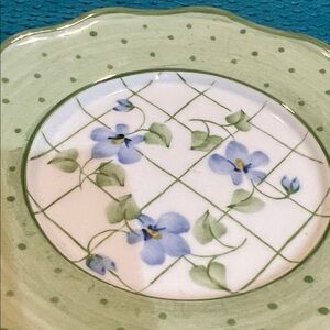 Springtime Green and White Floral Trinket Dish/Spoon Rest w/Small purple flowers