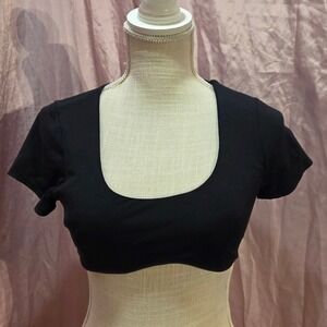 ALO Yoga Black Square Neck Short Sleeve Crop Top Athletic Athleisure Women