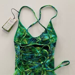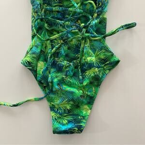 VDM Revolve Savannah Tropical Green One Piece Swimsuit Lace Up Back Bathing Suit