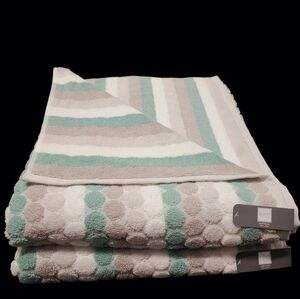 Soho Living - New with tags 100% Cotton OEKO -TEX sea foam green, Grays, & white. Reversible to dots or stripes, (8Pcs) Bath Towels Collection 2 Bath Towels 30in x 59in 2 Hand Towels 16in x 28in, 4 Wash Clothes 12in x 12in. Soooooo pretty! Thanks for looking 🙂