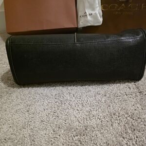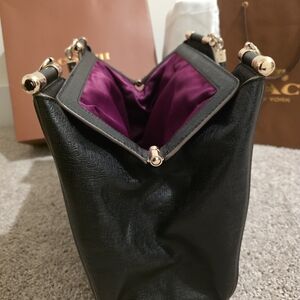 Elegant Coach handbag in classic black leather. Perfect for any occasion with its sleek design and luxurious feel. Very gently used, no marks, no damage or wear. Purse hardware and chain are strong and have a good, solid weight to them. Very nice Coach bag! Includes coach box and dust bag.