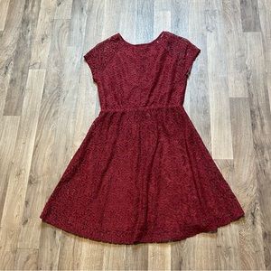 Adam Levine Burgundy Lace Short Sleeve Skater Mini Dress Size Medium