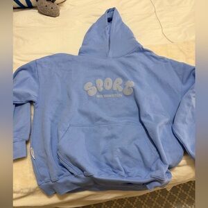 Hi! Quick questions. What color is the letter writing on the front? Also are there any marks or stains on the front? I zoomed in on the pic and it looked a little bit like there was a mark towards the bottom hem in the middle of the sweatshirt, but not sure. Thanks!