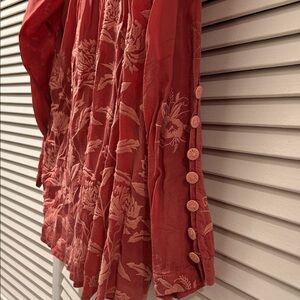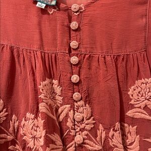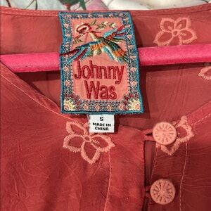 Vintage Johnny Was bohemian blouse with floral embroidery on front and back Features unique button detail accents and a soft neckline. S. Pit pit 20”approximately and shoulder to hem approximately. 26”.
