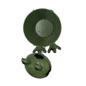 Cute Metal Planter Green Frog W/Spots Wobbly Spring Head Big Eyes Removable Pot