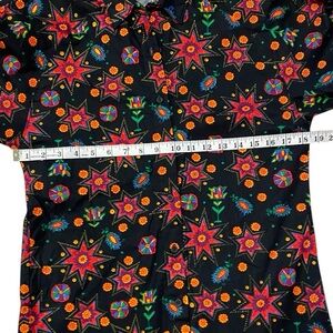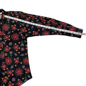 Keywords: Rocky Mountain Clothing, Button Down Shirt, Star Print, Floral Print, Black Shirt, Long Sleeve Shirt, XS, Extra Small, Retro Shirt, Vintage Style, Colorful Shirt, Shoulder Pads, Womenswear