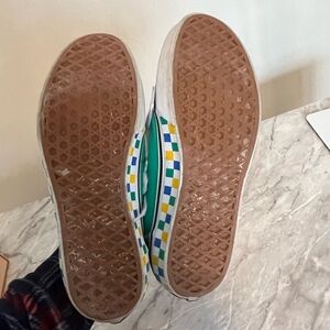Vans Ward Low sneakers in a primary color block design featuring blue, yellow, and a checkerboard pattern on the sole size 8.5 women’s size 7 youth