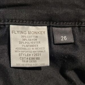 Flying Monkey Black Denim Jeans Womens Size 26 Distressed Raw Hem Skinny