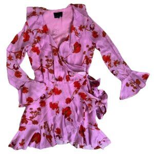 Cynthia Rowley Malibu Ruffle Silk Blend Mini Dress in Pink Poppy. Size XS