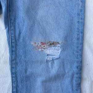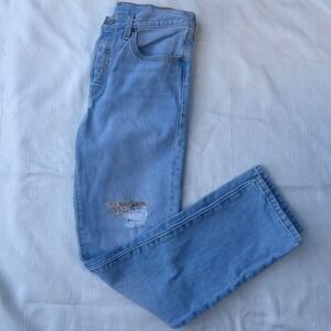 Keywords: Levi's, 501, 150th Anniversary, Jeans, Denim, Light Wash, Distressed, Ripped, Floral Patch, Womens Jeans, Straight Leg, Casual, Vintage, Levi Strauss