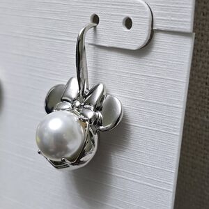 Chic silver Minnie Mouse earrings featuring elegant pearl accents. Perfect for any occasion.