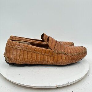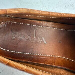 Prada Men Size 8 Brown Faux Crocodile Leather Slip On Penny Loafer Dress Shoes