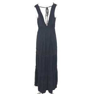 Sweet Lovely by Jen Maxi Dress Black Cochet Surplice Babydoll Empire V Neck Sz L