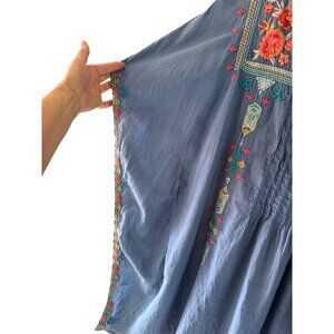 Johnny Was Womens Caftan One Size Blue Cotton Embroidered Round Neck Boho
