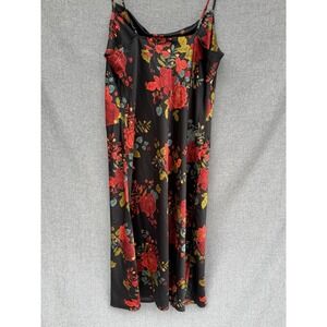 Sara Michelle Cowlneck Satin Slip Dress Sz Large Dark Romantic Red Rose Floral
