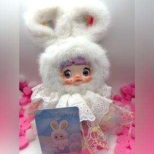 This piece has the perfect mix of plush body + detailed vinyl-style face, with dreamy pastel tones, mushroom theme, and adorable facial artwork. The 400% size makes it a standout display piece for shelves, beds, or collector setups.