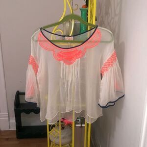Beautiful plenty by Tracy Reese Anthropologie embroidered top. 100% silk. Trendy neon accent. Never been worn with tags attached.