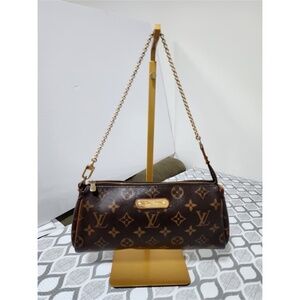 Authentic LOUIS VUITTON Monogram Canvas Eva Clutch/ Crossbody Bag Brown