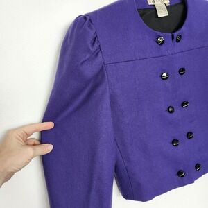 LANVIN Vintage 70s Military Victorian Wool Cropped Blazer Jacket Purple Goth.