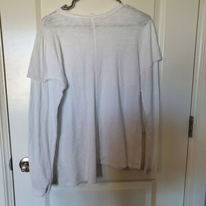 Womens Long Sleeve Slub Knit T-shirt Top Scoopneck White S