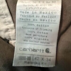 Keywords: Carhartt, work pants, canvas pants, relaxed fit, mens pants, olive green pants, carpenter pants, utility pants, durable pants, outdoor pants, 42x34, workwear, Carhartt pants
