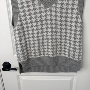 Chic V-neck sweater with a classic houndstooth pattern. Soft and stylish for any occasion.