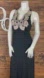 This elegant black and tan maxi dress features intricate embroidery detailing, perfect for any occasion. Its sophisticated design offers both style and comfort. Split V-Neckline. Racerback Open Backside. Soft Knit Material.