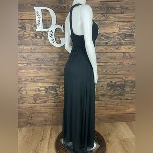 INC International Concepts | Black Maxi Dress Lace Embroidered Split Deep V-Neck